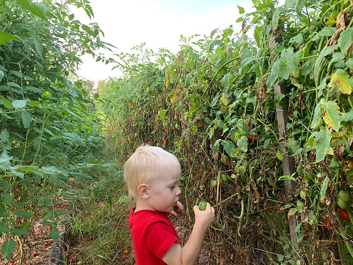 Cooper checking out the tomatoes