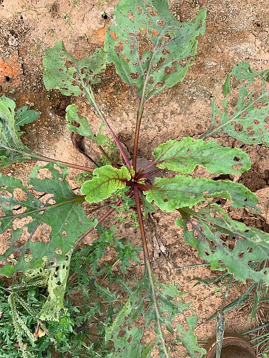 New growth on the beets, fresh new leaf in the center old worm eaten leaves on the outside