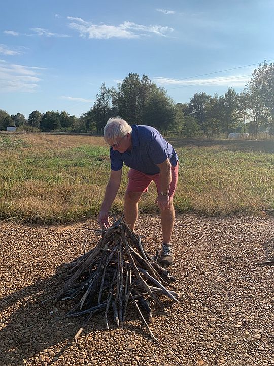 Josephine’s dad, Sterling building a fire for the farm party