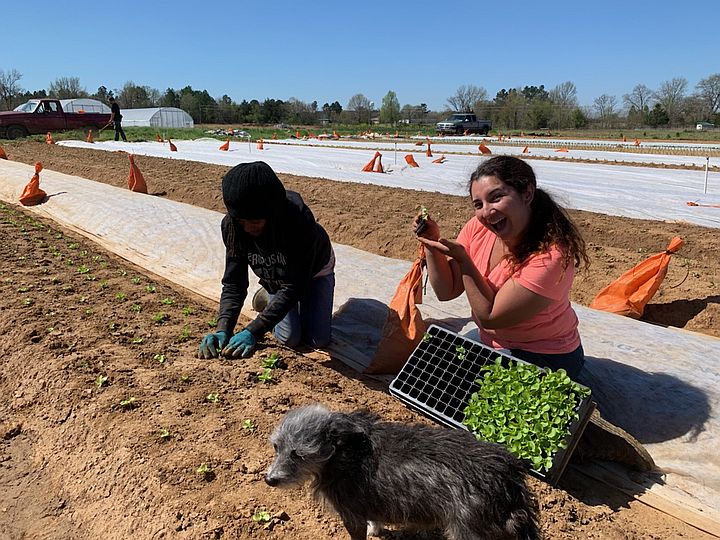 Interns (L to R) Sunshine and Candice planting lettuce