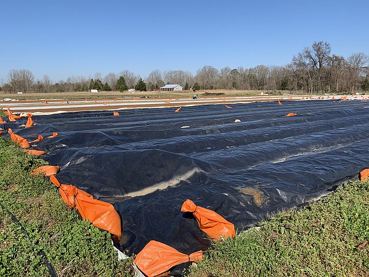 The wrapped beds will be the last planting of tomatoes and other summer goodies and the unwrapped beds are the beginning of fall beds