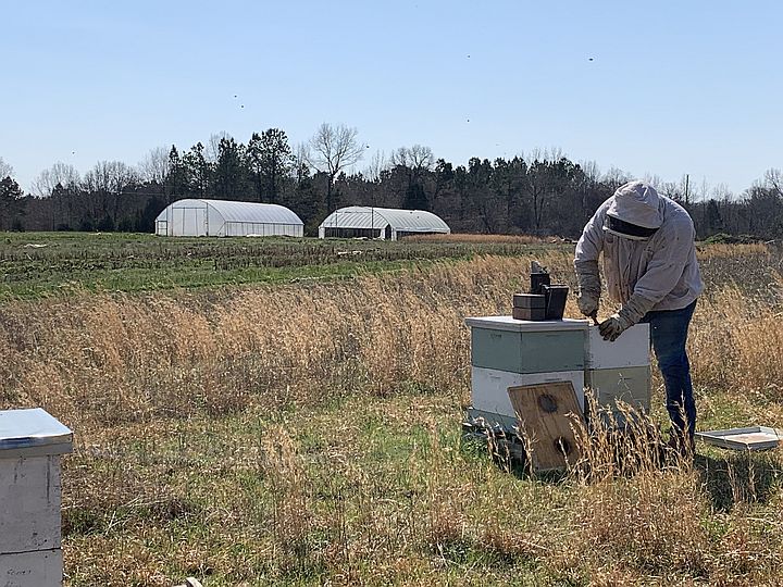Gus, from Crane Nest Apiary working our bees