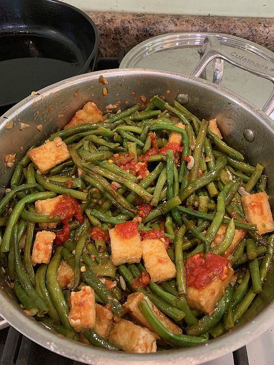 Stir fried long beans with fried tofu