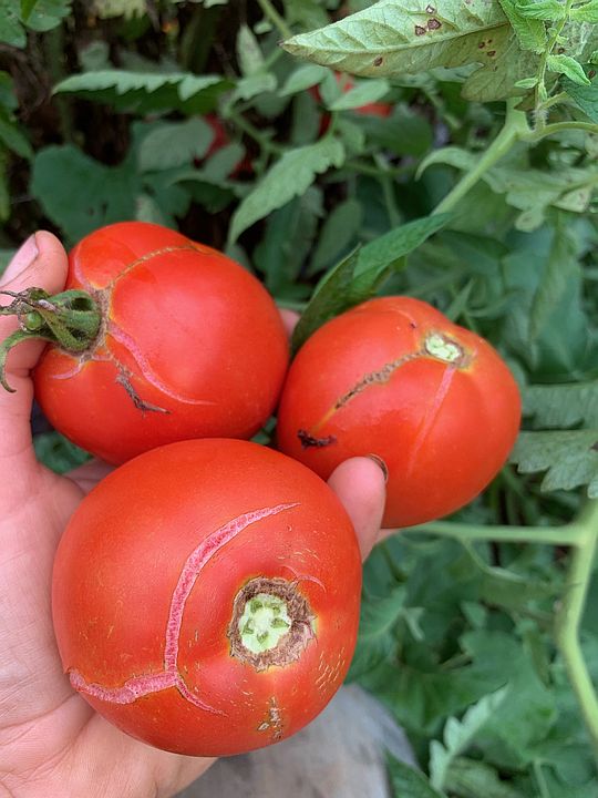 Cracked and splitting tomatoes