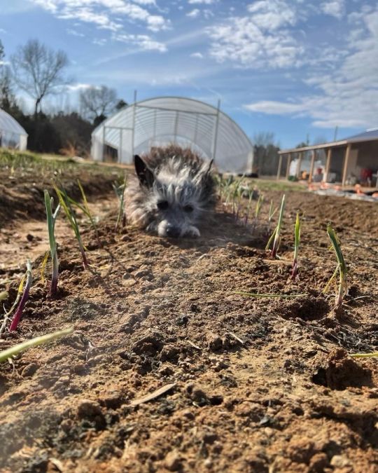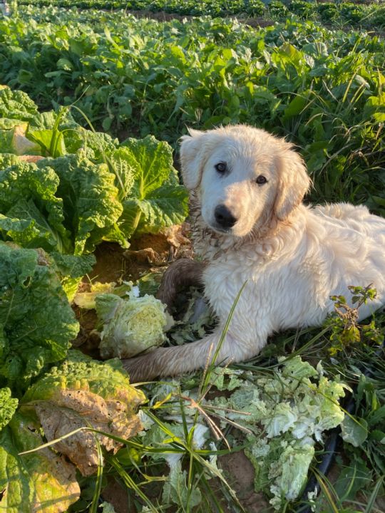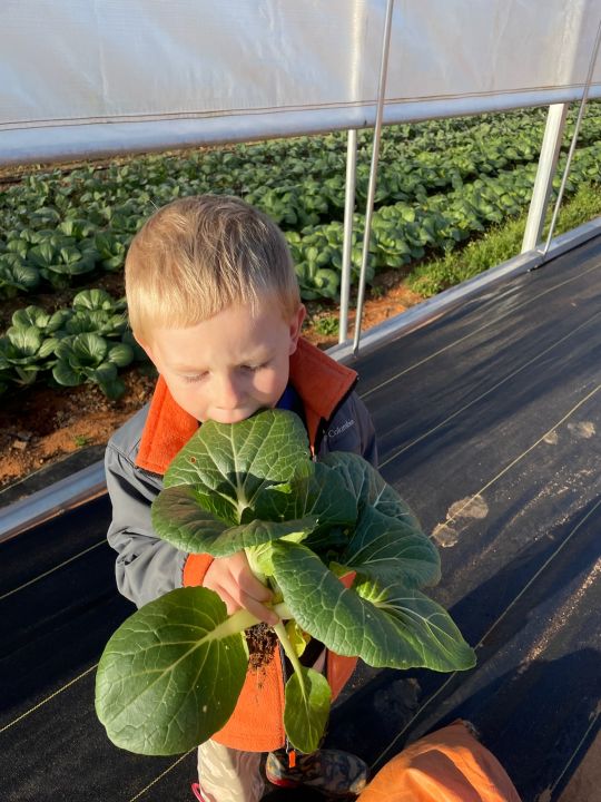 As fresh as it gets. Cooper is eating the bok choy he just plucked from the ground