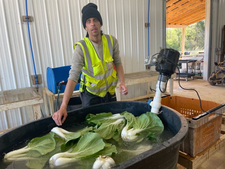 Robin giving bok choi a rinse