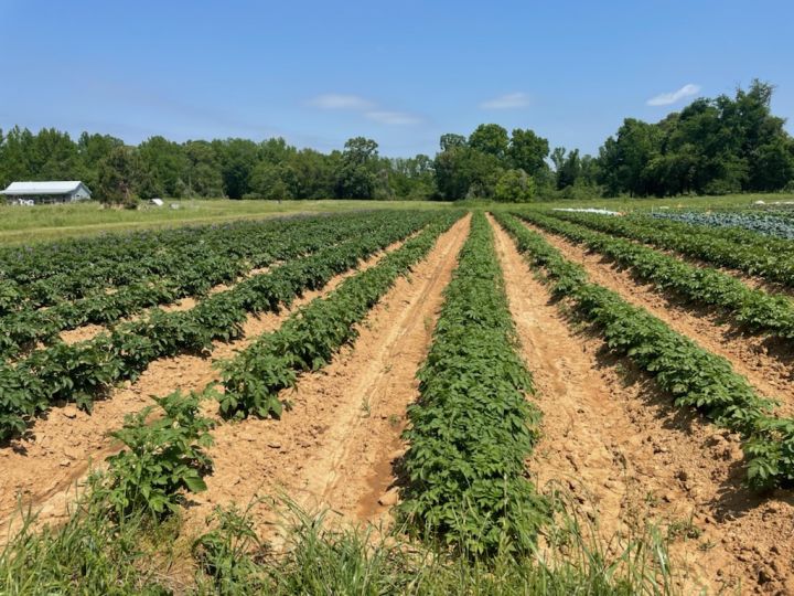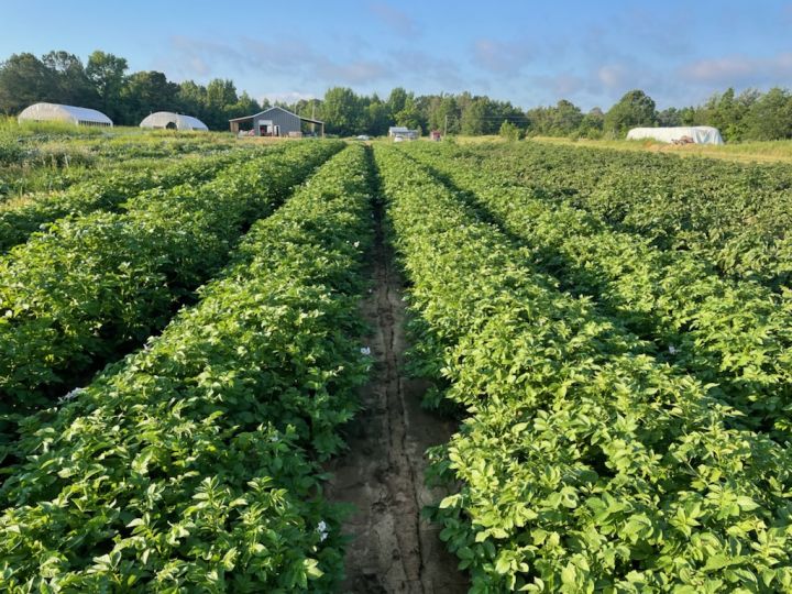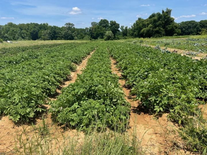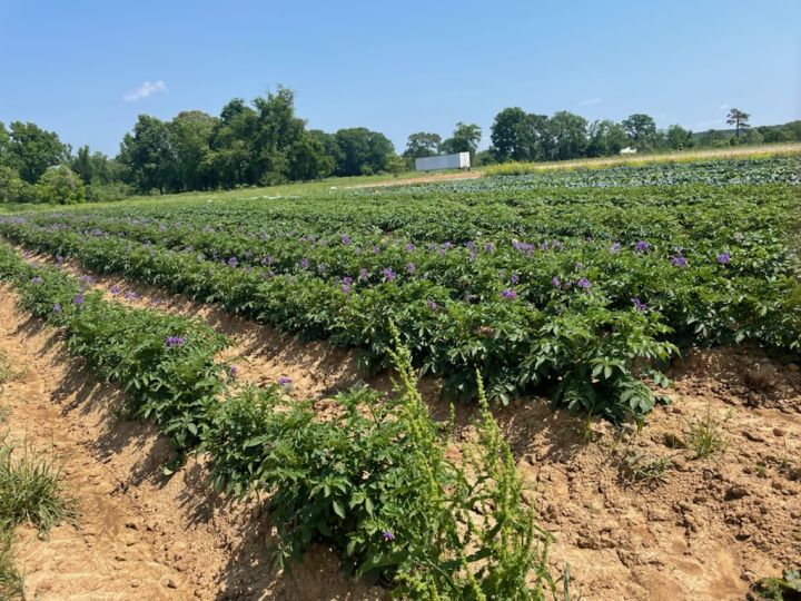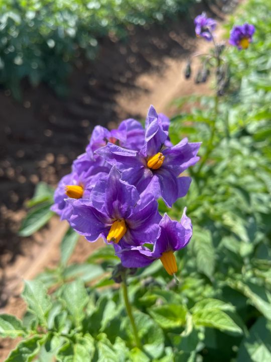Potato flowers are a nice addition to the field in May