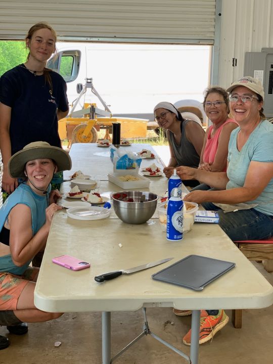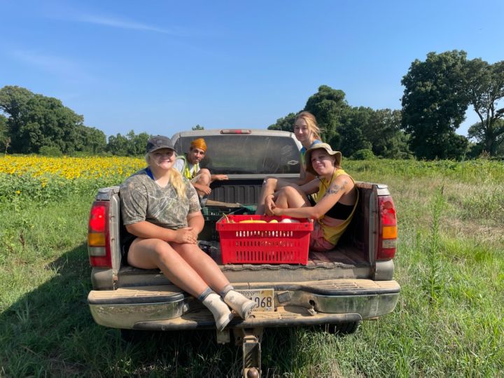 The work crew in Jo’s truck (L to R) Emery, Robin, Skylar and Melea