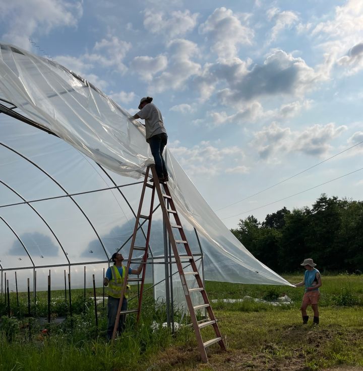 Putting new plastic on the old high tunnel