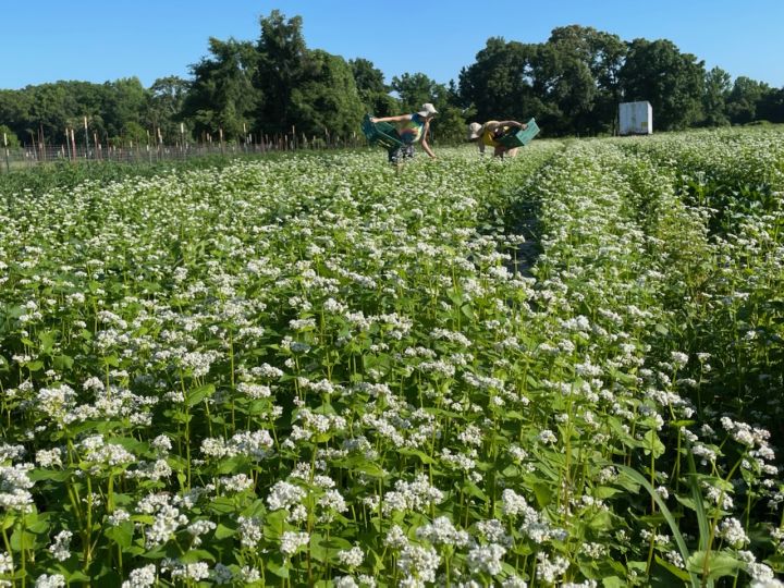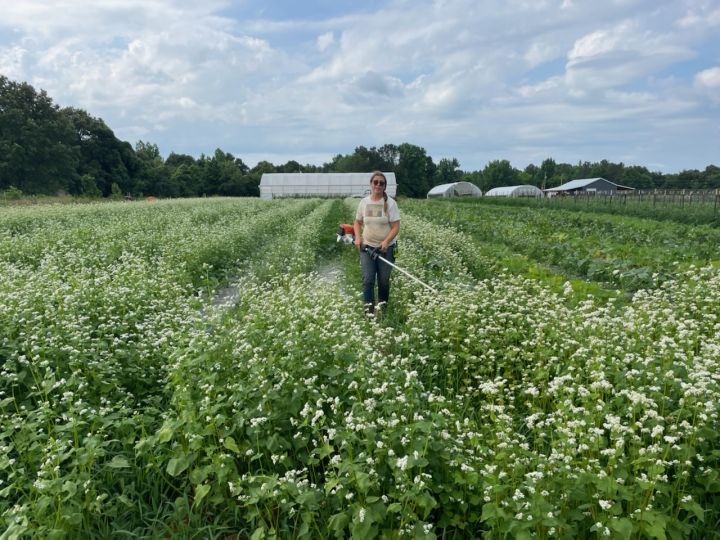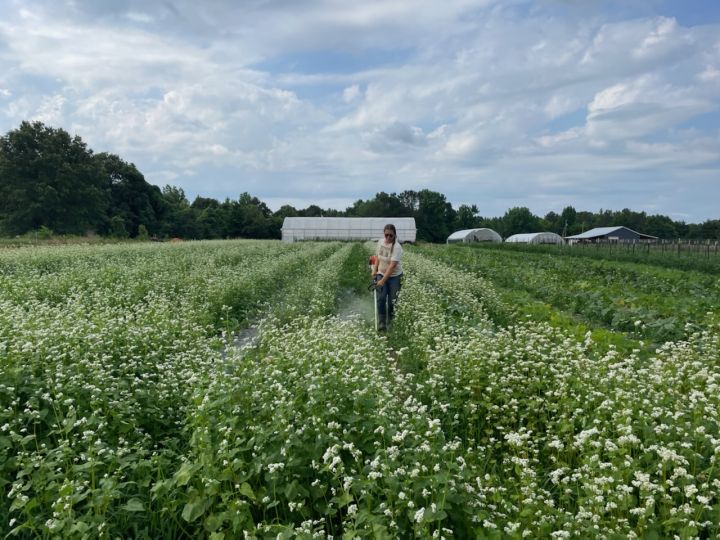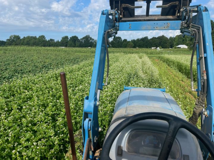 Mowing down the buckwheat cover crop