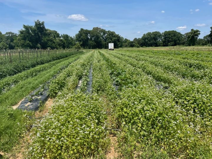 Beds with buckwheat living mulch.