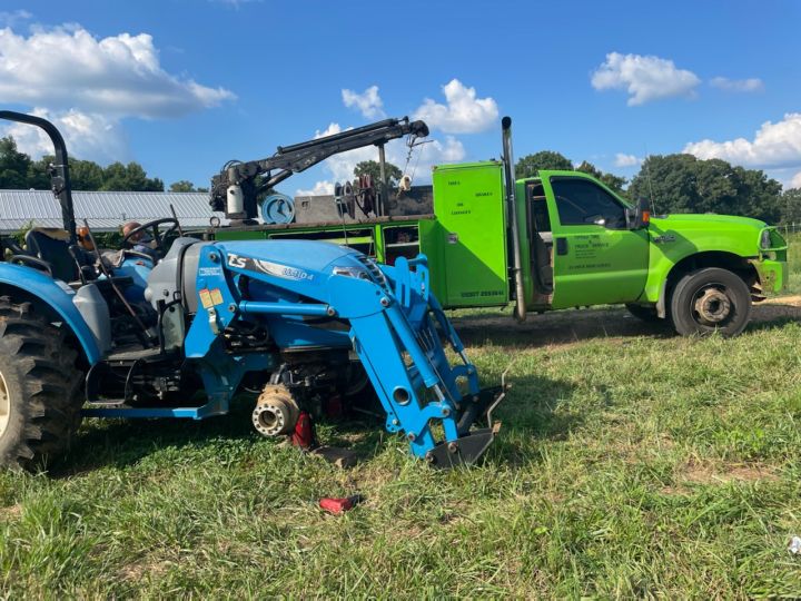 Here is a Mark using his back hoe to help install hops on the high tunnel
