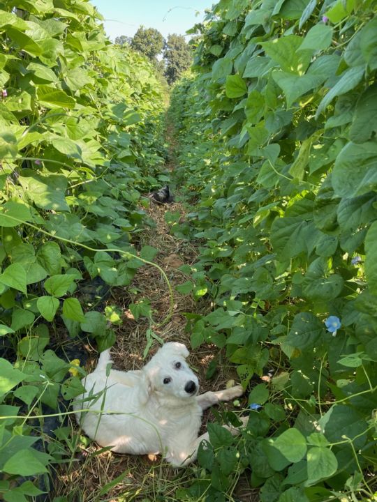 Love the dogs hanging out with us during bean harvesting