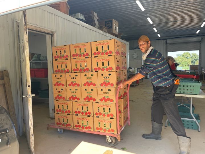 Josephine sorting tomatoes
