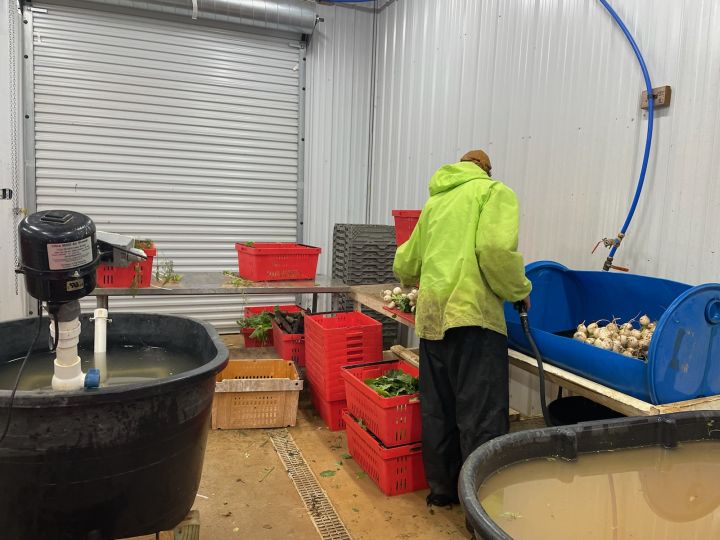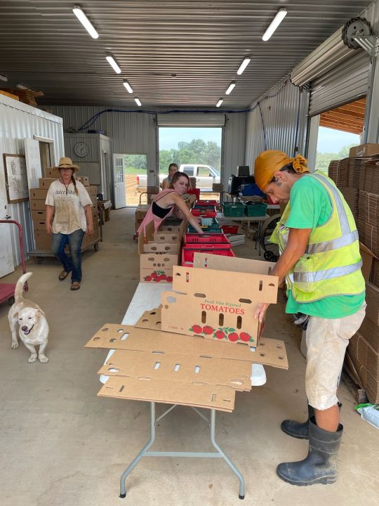 The team packing shares for the Wednesday CSA