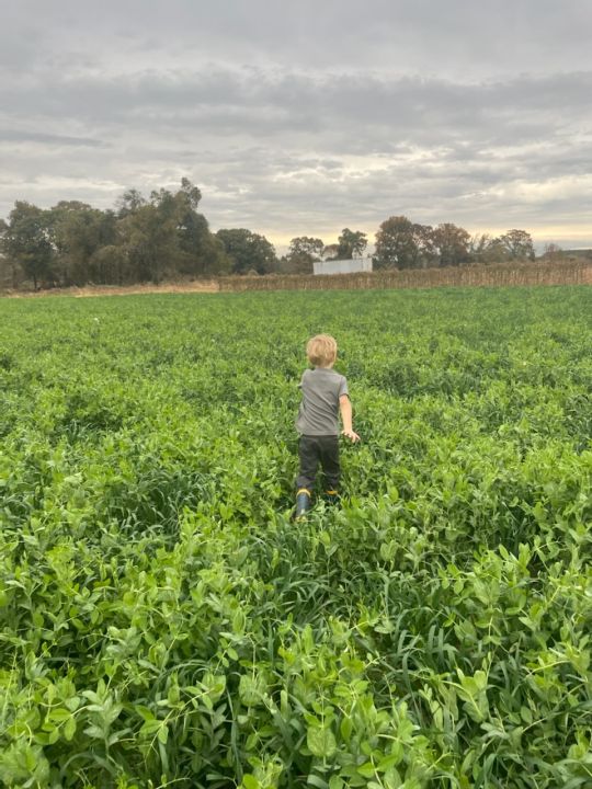 Cooper running through the winter cover crop.