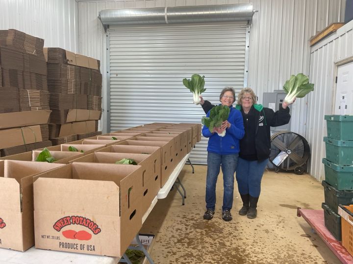 The moms, Guin (L) and Connie (R) helping pack the CSA