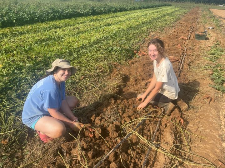 2022 sweet potato harvest has begun, Anna (L) and Skylar (R) harvesting sweet potatoes